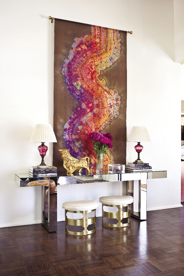 Usually done in accent pieces, either a side table, a nightstand, a buffet piece, a coffee table, even parts of your bed as you’ll see, or something as simple as a mirror over the fireplace versus art, just a little can go a long way. Something about it to me brings light and cheer and almost relaxes the space and gives it a fresh feel.